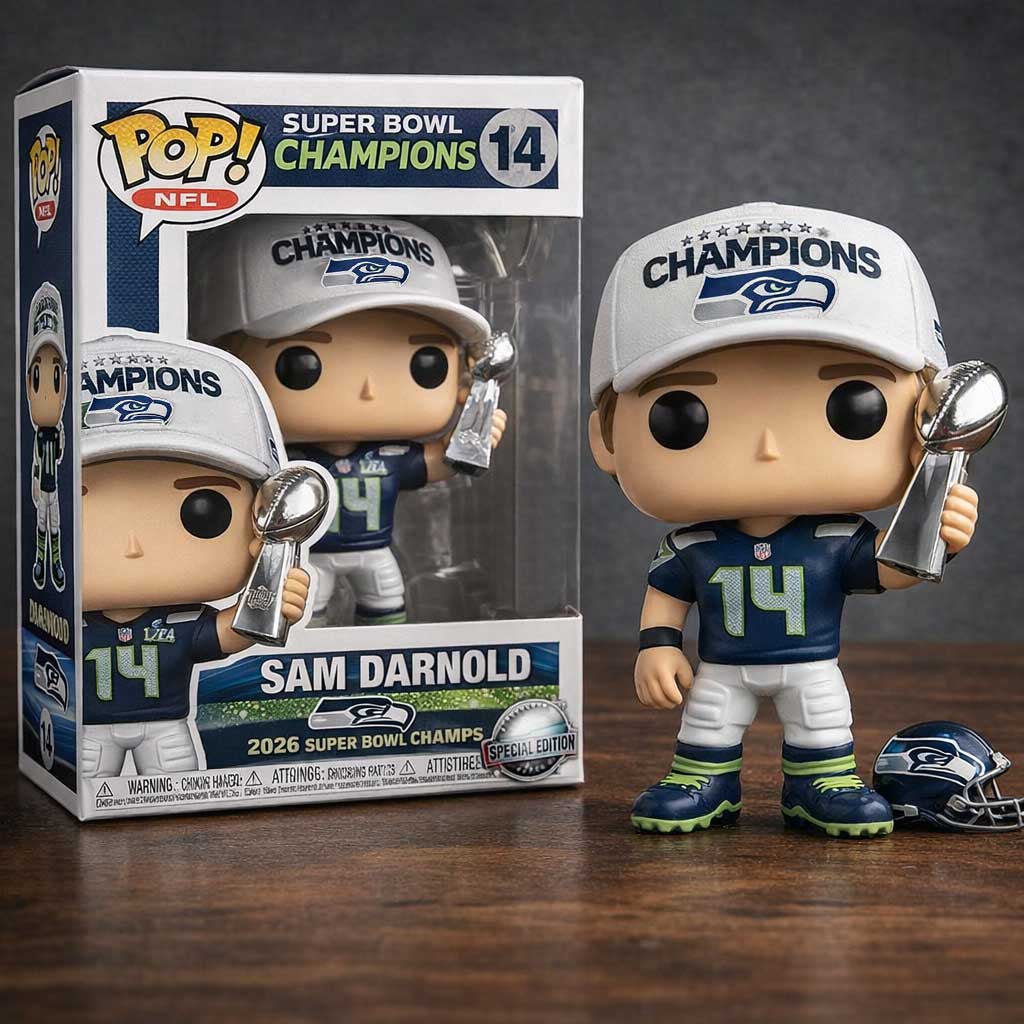 🏈🏆Celebrate Seattle’s legendary Super Bowl LX victory with this exclusive Seattle Seahawks Champions Sam Darnold Pop A must-have collectible for fans, collectors, and football lovers everywhere!