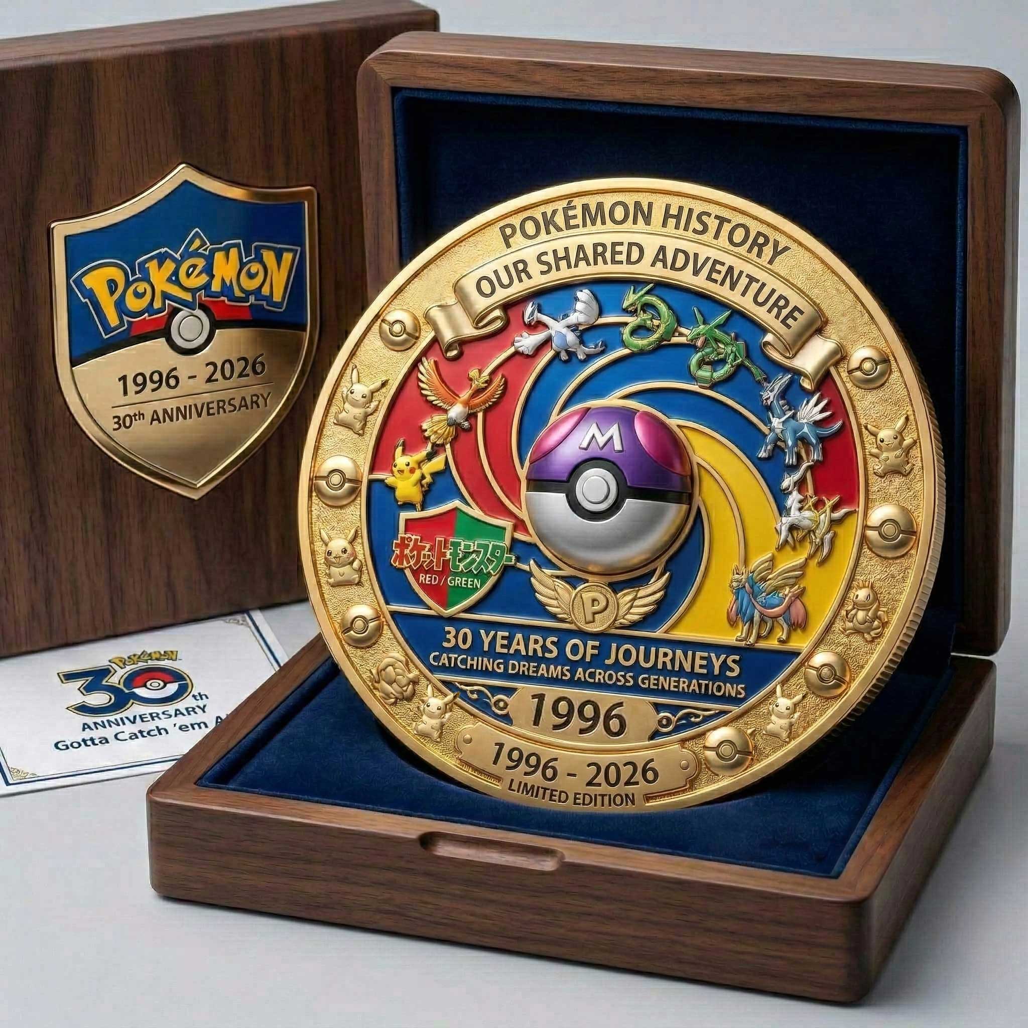 Celebrate 30 years of adventures, memories, and Pokémon magic with this limited-edition commemorative coin honoring the iconic journey of Pokémon since 1996. Perfect for collectors, fans, and anyone who’s grown up “catching ’em all!”